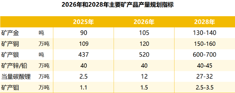 2月9日,紫金矿业公告发布“三年(2026-2028年)规划和2035年远景目标纲要”,规划到2028年,公司的资源储量、主要矿产品产量、销售收入、资产规模、利润等综合指标排名进一步提升,铜、金矿产品产量进入全球前3位,全面建成高度适配且具有紫金特色的全球化运营管理体系和ESG可持续发展体系;力争到2035年,公司主要指标较2025年实现跨越式增长,部分指标达到全球首位,全面建成“绿色高技术超一流国际矿业集团”。